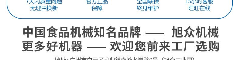 廣州旭眾食品機械有限公司是一家集科研開發(fā),生產(chǎn)設計,營銷服務為一體的現(xiàn)代化生產(chǎn)企業(yè)?,F(xiàn)代化生產(chǎn)車間,精湛制造技術,所產(chǎn)機械歷經(jīng)市場重重考驗,不斷贏得海內(nèi)外客戶的贊譽。