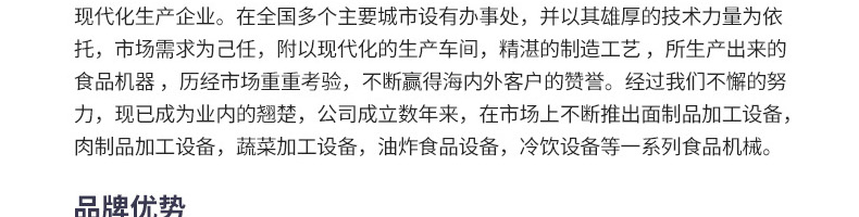 廣州旭眾食品機(jī)械有限公司是一家集科研開(kāi)發(fā),生產(chǎn)設(shè)計(jì),營(yíng)銷(xiāo)服務(wù)為一體的現(xiàn)代化生產(chǎn)企業(yè)?,F(xiàn)代化生產(chǎn)車(chē)間,精湛制造技術(shù),所產(chǎn)機(jī)械歷經(jīng)市場(chǎng)重重考驗(yàn),不斷贏得海內(nèi)外客戶的贊譽(yù)。