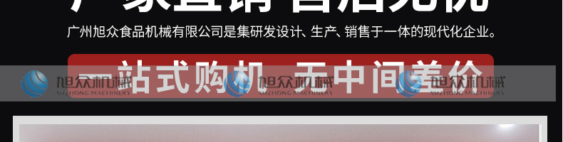 廣州旭眾食品機(jī)械有限公司是一家集科研開發(fā),生產(chǎn)設(shè)計(jì),營銷服務(wù)為一體的現(xiàn)代化生產(chǎn)企業(yè)?,F(xiàn)代化生產(chǎn)車間,精湛制造技術(shù),所產(chǎn)機(jī)械歷經(jīng)市場重重考驗(yàn),不斷贏得海內(nèi)外客戶的贊譽(yù)。
