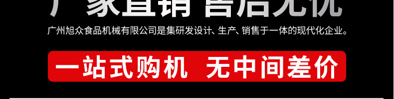 廣州旭眾食品機(jī)械有限公司是一家集科研開(kāi)發(fā),生產(chǎn)設(shè)計(jì),營(yíng)銷(xiāo)服務(wù)為一體的現(xiàn)代化生產(chǎn)企業(yè)?,F(xiàn)代化生產(chǎn)車(chē)間,精湛制造技術(shù),所產(chǎn)機(jī)械歷經(jīng)市場(chǎng)重重考驗(yàn),不斷贏得海內(nèi)外客戶的贊譽(yù)。