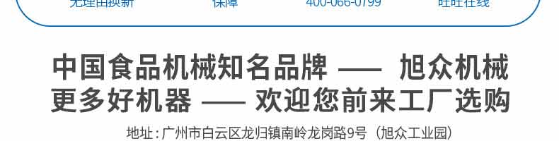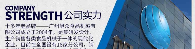 廣州旭眾食品機(jī)械有限公司是一家集科研開發(fā),生產(chǎn)設(shè)計(jì),營(yíng)銷服務(wù)為一體的現(xiàn)代化生產(chǎn)企業(yè)?,F(xiàn)代化生產(chǎn)車間,精湛制造技術(shù),所產(chǎn)機(jī)械歷經(jīng)市場(chǎng)重重考驗(yàn),不斷贏得海內(nèi)外客戶的贊譽(yù)。