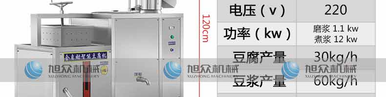 XZ-60智能豆腐機,一機多用:可生產豆腐系列產品:單色(嫩,老)豆腐、多彩豆 腐、單色豆腐皮、多色豆腐皮、彩色豆腐干、豆?jié){、豆花等豆制品制作,還可以與其他設備和工藝配套生 產更多的豆制品。
