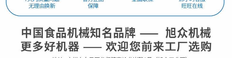 廣州旭眾食品機械有限公司是一家集科研開發(fā),生產設計,營銷服務為一體的現(xiàn)代化生產企業(yè)。現(xiàn)代化生產車間,精湛制造技術,所產機械歷經市場重重考驗,不斷贏得海內外客戶的贊譽。
