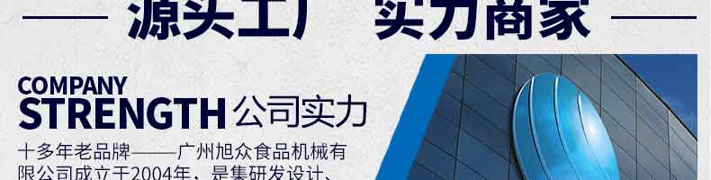 廣州旭眾食品機(jī)械有限公司是一家集科研開(kāi)發(fā),生產(chǎn)設(shè)計(jì),營(yíng)銷(xiāo)服務(wù)為一體的現(xiàn)代化生產(chǎn)企業(yè)?,F(xiàn)代化生產(chǎn)車(chē)間,精湛制造技術(shù),所產(chǎn)機(jī)械歷經(jīng)市場(chǎng)重重考驗(yàn),不斷贏得海內(nèi)外客戶的贊譽(yù)。