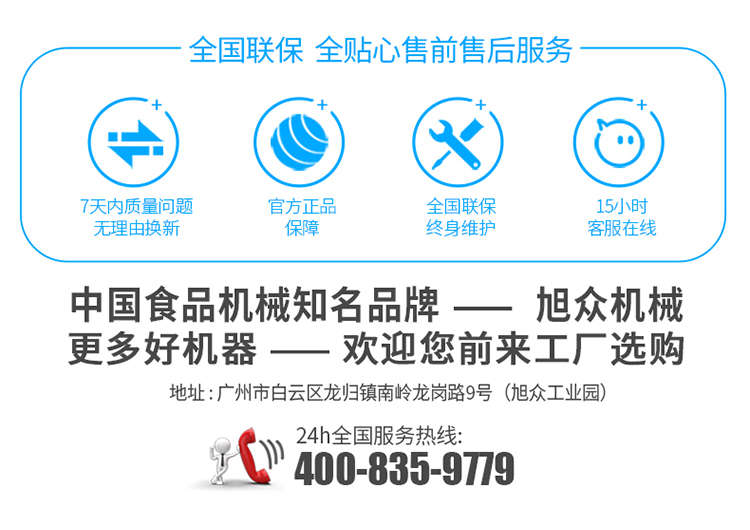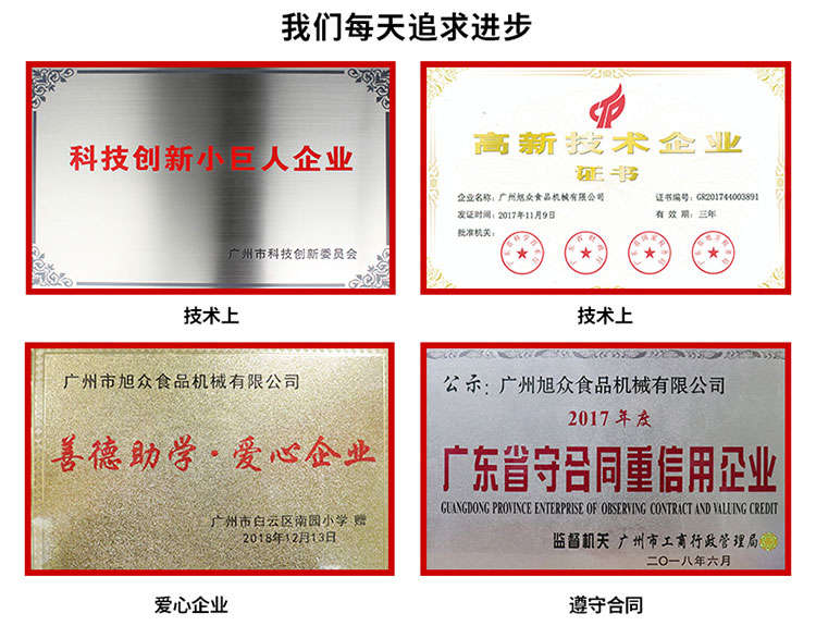 廣州旭眾食品機(jī)械有限公司是一家集科研開發(fā),生產(chǎn)設(shè)計,營銷服務(wù)為一體的現(xiàn)代化生產(chǎn)企業(yè)。現(xiàn)代化生產(chǎn)車間,精湛制造技術(shù),所產(chǎn)機(jī)械歷經(jīng)市場重重考驗(yàn),不斷贏得海內(nèi)外客戶的贊譽(yù)。