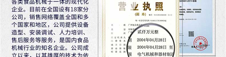 廣州旭眾食品機(jī)械有限公司是一家集科研開(kāi)發(fā),生產(chǎn)設(shè)計(jì),營(yíng)銷服務(wù)為一體的現(xiàn)代化生產(chǎn)企業(yè)。現(xiàn)代化生產(chǎn)車間,精湛制造技術(shù),所產(chǎn)機(jī)械歷經(jīng)市場(chǎng)重重考驗(yàn),不斷贏得海內(nèi)外客戶的贊譽(yù)。