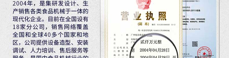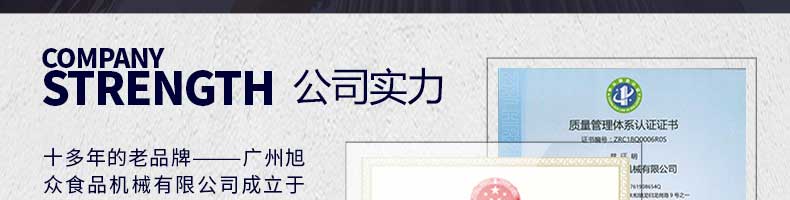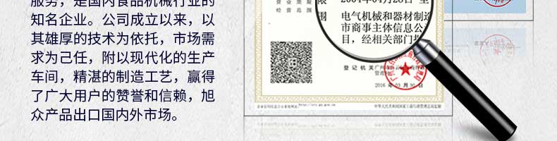 廣州旭眾食品機械有限公司是一家集科研開發(fā),生產(chǎn)設計,營銷服務為一體的現(xiàn)代化生產(chǎn)企業(yè)?,F(xiàn)代化生產(chǎn)車間,精湛制造技術,所產(chǎn)機械歷經(jīng)市場重重考驗,不斷贏得海內外客戶的贊譽。