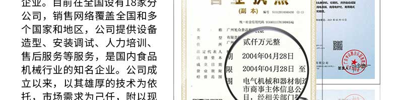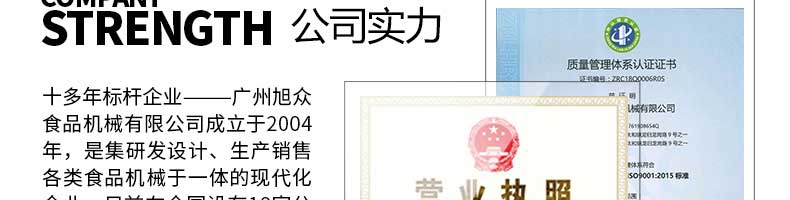 廣州旭眾食品機(jī)械有限公司是一家集科研開發(fā),生產(chǎn)設(shè)計(jì),營(yíng)銷服務(wù)為一體的現(xiàn)代化生產(chǎn)企業(yè)?,F(xiàn)代化生產(chǎn)車間,精湛制造技術(shù),所產(chǎn)機(jī)械歷經(jīng)市場(chǎng)重重考驗(yàn),不斷贏得海內(nèi)外客戶的贊譽(yù)。