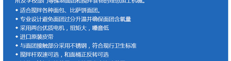 SZH-30型雙速雙動和面機,本機適合攪拌各種面包、包子、饅頭、湯圓、披薩餅面團(tuán),專業(yè)設(shè)計避免面團(tuán)過分升溫并確保面團(tuán)含氧量。過載、缺相保護(hù)裝置,防護(hù)罩安全連動裝置。