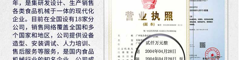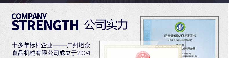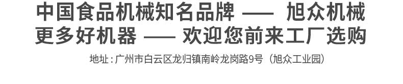 廣州旭眾食品機(jī)械有限公司是一家集科研開(kāi)發(fā),生產(chǎn)設(shè)計(jì),營(yíng)銷(xiāo)服務(wù)為一體的現(xiàn)代化生產(chǎn)企業(yè)?,F(xiàn)代化生產(chǎn)車(chē)間,精湛制造技術(shù),所產(chǎn)機(jī)械歷經(jīng)市場(chǎng)重重考驗(yàn),不斷贏得海內(nèi)外客戶的贊譽(yù)。
