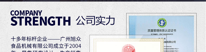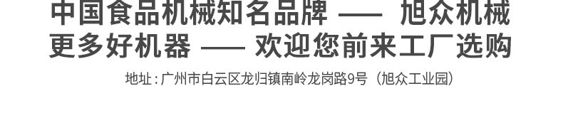 廣州旭眾食品機械有限公司是一家集科研開發(fā),生產(chǎn)設(shè)計,營銷服務(wù)為一體的現(xiàn)代化生產(chǎn)企業(yè)?,F(xiàn)代化生產(chǎn)車間,精湛制造技術(shù),所產(chǎn)機械歷經(jīng)市場重重考驗,不斷贏得海內(nèi)外客戶的贊譽。