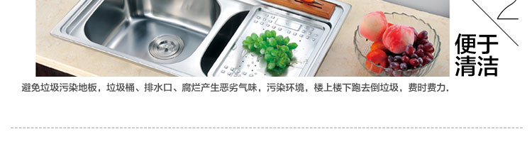 DCLQ38-廚房垃圾處理器,該機(jī)擁有獨(dú)特的粉碎功能,使所有垃圾研磨吸毒真正低于3毫米,用戶不用為管道堵塞而煩惱,粉碎后粗、細(xì)兩種垃圾通過濾孔自動(dòng)分離,成漿狀的細(xì)垃圾隨水流流入管道,粗的垃圾會(huì)稍停留在研磨倉繼續(xù)粉碎,形成粉末狀后,再隨水流流入管道,客戶可以放心使用。