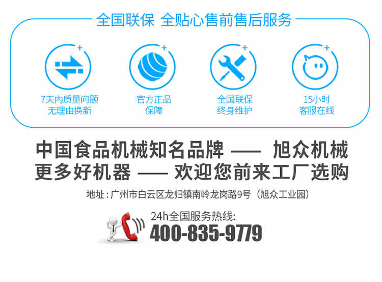 廣州旭眾食品機(jī)械有限公司是一家集科研開發(fā),生產(chǎn)設(shè)計(jì),營(yíng)銷服務(wù)為一體的現(xiàn)代化生產(chǎn)企業(yè)?,F(xiàn)代化生產(chǎn)車間,精湛制造技術(shù),所產(chǎn)機(jī)械歷經(jīng)市場(chǎng)重重考驗(yàn),不斷贏得海內(nèi)外客戶的贊譽(yù)。
