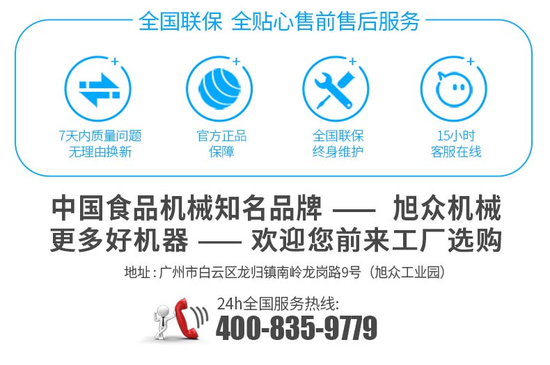 廣州旭眾食品機(jī)械有限公司是一家集科研開發(fā),生產(chǎn)設(shè)計,營銷服務(wù)為一體的現(xiàn)代化生產(chǎn)企業(yè)?,F(xiàn)代化生產(chǎn)車間,精湛制造技術(shù),所產(chǎn)機(jī)械歷經(jīng)市場重重考驗(yàn),不斷贏得海內(nèi)外客戶的贊譽(yù)。