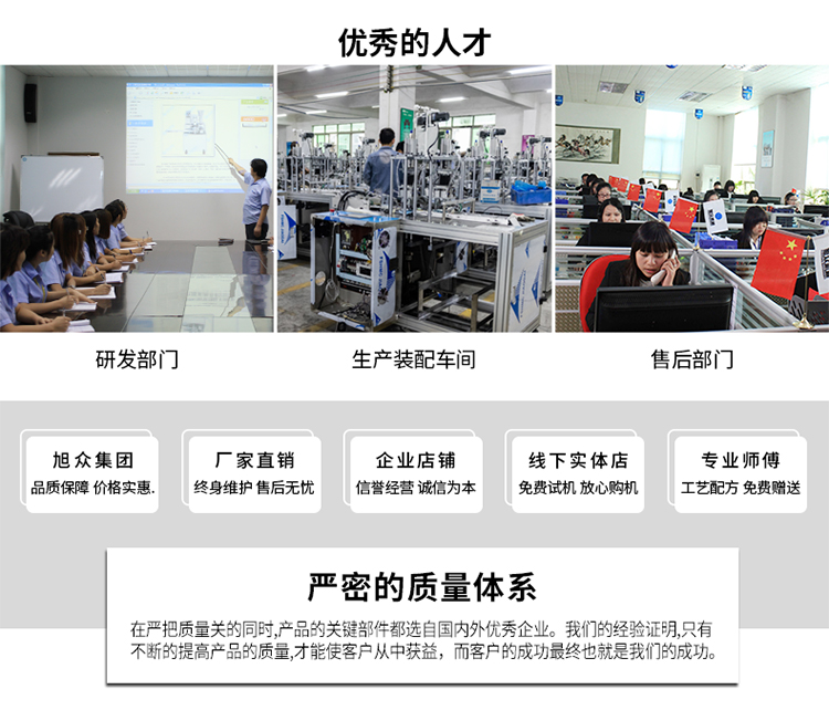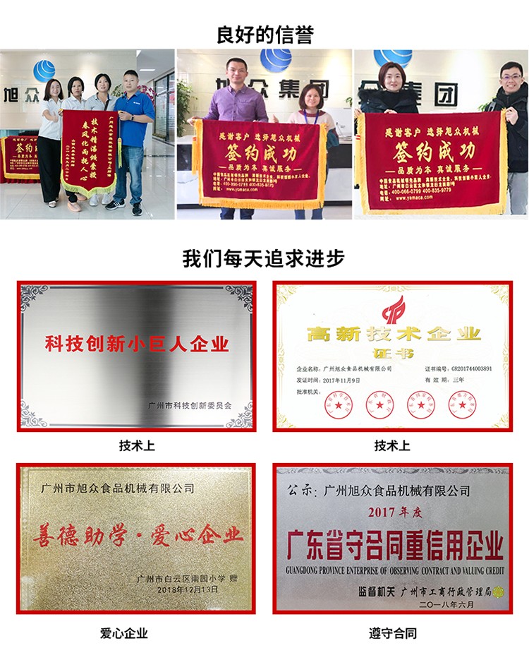 廣州旭眾食品機械有限公司是一家集科研開發(fā),生產(chǎn)設(shè)計,營銷服務(wù)為一體的現(xiàn)代化生產(chǎn)企業(yè)?,F(xiàn)代化生產(chǎn)車間,精湛制造技術(shù),所產(chǎn)機械歷經(jīng)市場重重考驗,不斷贏得海內(nèi)外客戶的贊譽。