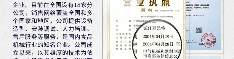 廣州旭眾食品機(jī)械有限公司是一家集科研開發(fā),生產(chǎn)設(shè)計(jì),營(yíng)銷服務(wù)為一體的現(xiàn)代化生產(chǎn)企業(yè)?,F(xiàn)代化生產(chǎn)車間,精湛制造技術(shù),所產(chǎn)機(jī)械歷經(jīng)市場(chǎng)重重考驗(yàn),不斷贏得海內(nèi)外客戶的贊譽(yù)。