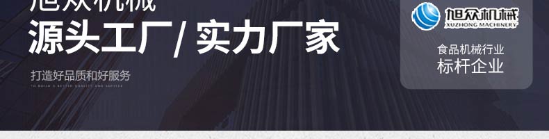 廣州旭眾食品機械有限公司是一家集科研開發(fā),生產設計,營銷服務為一體的現代化生產企業(yè)?,F代化生產車間,精湛制造技術,所產機械歷經市場重重考驗,不斷贏得海內外客戶的贊譽。