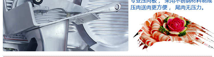 臺式半自動切片機(jī),適合切無骨肉類和其他類似榨菜帶有彈性的食物,把原材料肉切成肉片,并可自動成卷狀??汕信H馄⒀蛉馄?/p>