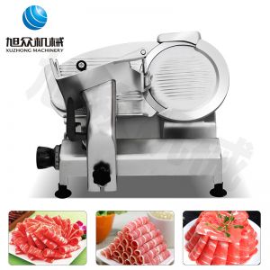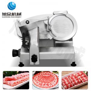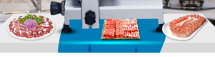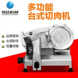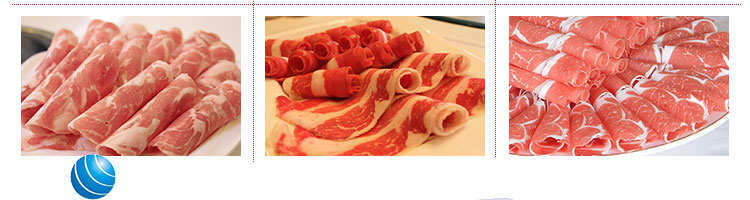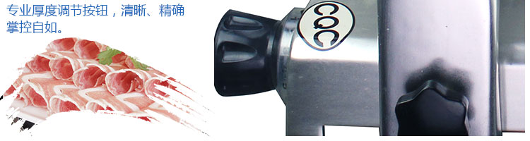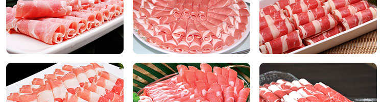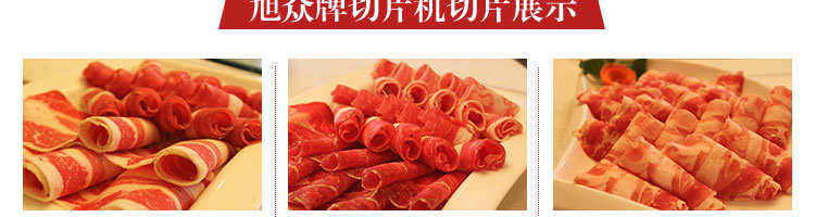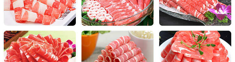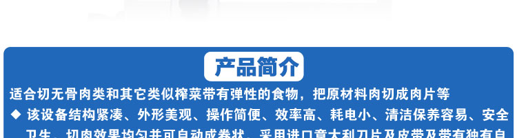 臺式全自動切片機(jī),適合切無骨肉類和其他類似榨菜帶有彈性的食物,把原材料肉切成肉片,并可自動成卷狀??汕信H馄?、羊肉片等