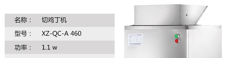 XZ-QC-A460切丁機(jī),切雞丁機(jī)適合將帶軟骨的禽類(lèi),如雞、鴨、鵝、鴿、魚(yú)類(lèi)等切成塊(?。睢1鞠盗性O(shè)備工作效率高,采用不銹鋼制作,美觀耐用,切割快速,少碎骨。