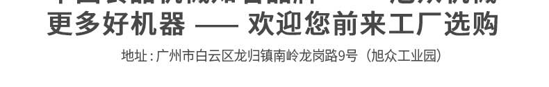 廣州旭眾食品機(jī)械有限公司是一家集科研開發(fā),生產(chǎn)設(shè)計(jì),營銷服務(wù)為一體的現(xiàn)代化生產(chǎn)企業(yè)?,F(xiàn)代化生產(chǎn)車間,精湛制造技術(shù),所產(chǎn)機(jī)械歷經(jīng)市場重重考驗(yàn),不斷贏得海內(nèi)外客戶的贊譽(yù)。