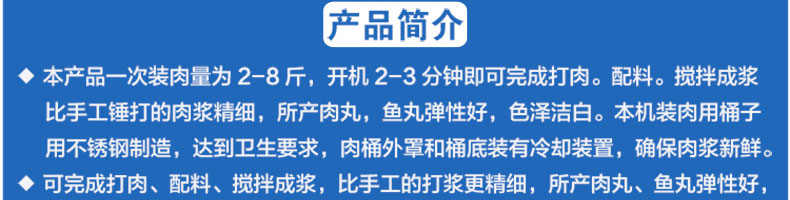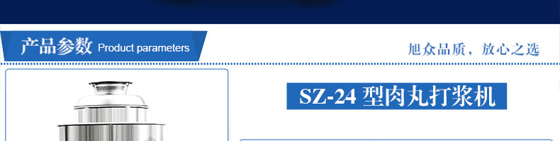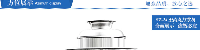 SZ-24型高速肉丸打漿機(jī),高速肉丸打漿機(jī)選用不銹鋼,生產(chǎn)過(guò)程中改善了肉質(zhì)脂肪纖維,生產(chǎn)出的丸子外表光滑細(xì)膩、低脂、口感爽脆、彈性好、韌性好,是潮州肉丸的專用打漿機(jī)。
