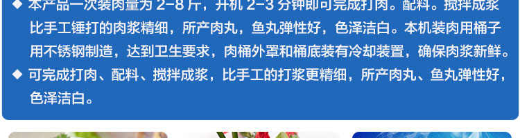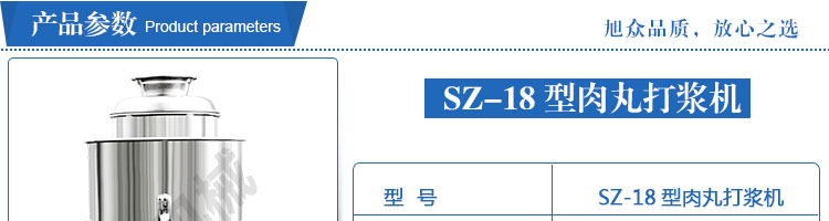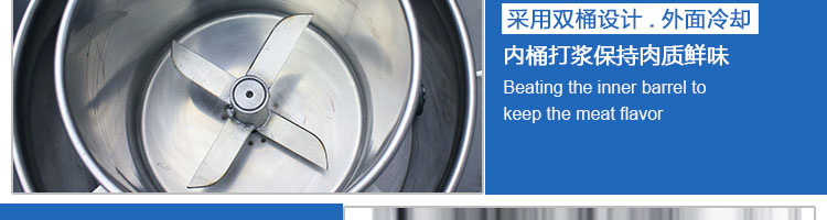 SZ-18型肉丸打漿機,本機裝肉用桶子采用不銹鋼制造,達到衛(wèi)生要求,肉桶外罩和桶底裝有冷卻裝置,確保肉漿新鮮。比手工的打漿更精細,所產肉丸、魚丸彈性好,色澤潔白。