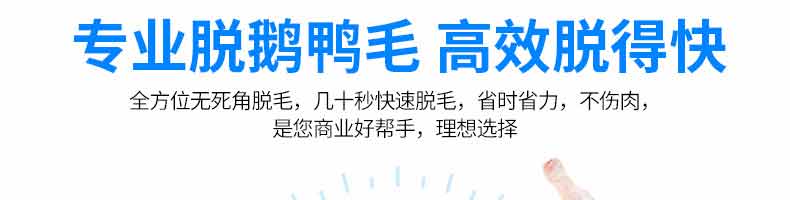 鵝鴨型脫毛機(jī),本機(jī)用于雞、鴨、鵝宰殺后的自動(dòng)脫毛,還可用于脫姜皮、脫馬鈴薯皮、脫魚鱗等農(nóng)產(chǎn)品。本機(jī)操作簡(jiǎn)單,省力、省時(shí)間、工作效率相當(dāng)于十多個(gè)人的手工勞動(dòng)。