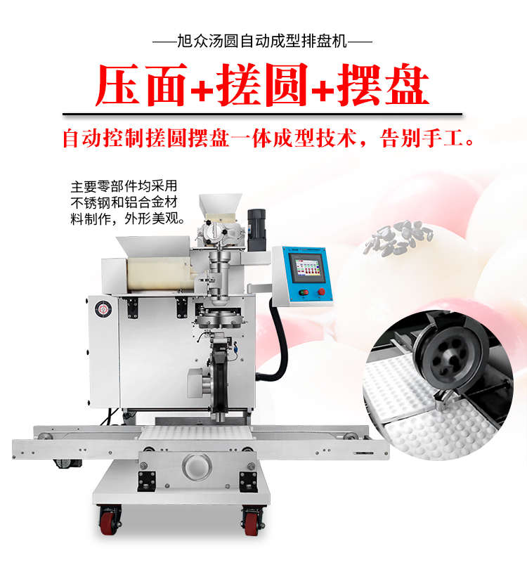 VFD-4000B湯圓機,定量準確自動搓圓排盤成型大小均勻口感柔滑??芍谱鞲魇桨W食品,如湯圓、芝麻球、豆沙包、南瓜餅、奶黃包等