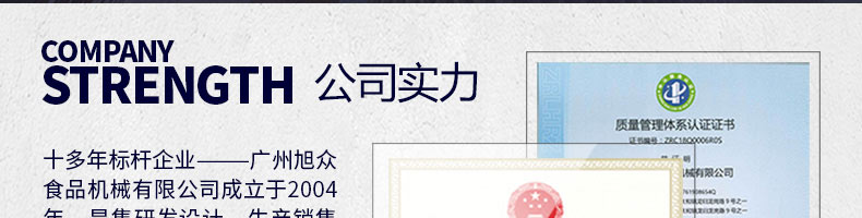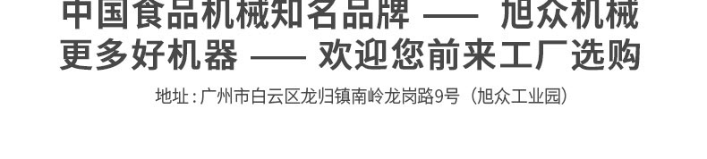 廣州旭眾食品機(jī)械有限公司是一家集科研開發(fā),生產(chǎn)設(shè)計(jì),營銷服務(wù)為一體的現(xiàn)代化生產(chǎn)企業(yè)?,F(xiàn)代化生產(chǎn)車間,精湛制造技術(shù),所產(chǎn)機(jī)械歷經(jīng)市場重重考驗(yàn),不斷贏得海內(nèi)外客戶的贊譽(yù)。