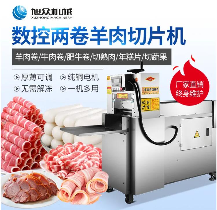 旭眾凍肉切片機(jī),是模擬手工切片的原理,采用變速箱傳動,自動進(jìn)料、自動切片,一次可切2卷(4卷),羊肉或肥牛。