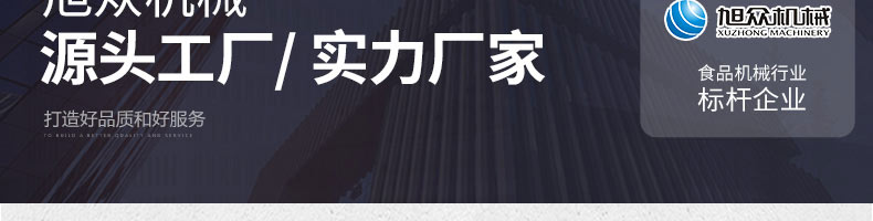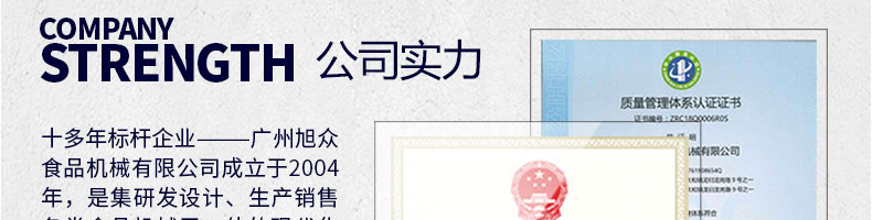 廣州旭眾食品機(jī)械有限公司是一家集科研開發(fā),生產(chǎn)設(shè)計(jì),營銷服務(wù)為一體的現(xiàn)代化生產(chǎn)企業(yè)。現(xiàn)代化生產(chǎn)車間,精湛制造技術(shù),所產(chǎn)機(jī)械歷經(jīng)市場重重考驗(yàn),不斷贏得海內(nèi)外客戶的贊譽(yù)。