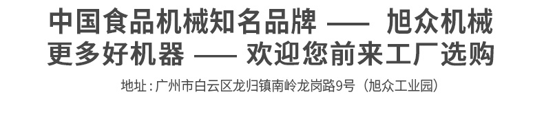廣州旭眾食品機械有限公司是一家集科研開發(fā),生產(chǎn)設(shè)計,營銷服務(wù)為一體的現(xiàn)代化生產(chǎn)企業(yè)。現(xiàn)代化生產(chǎn)車間,精湛制造技術(shù),所產(chǎn)機械歷經(jīng)市場重重考驗,不斷贏得海內(nèi)外客戶的贊譽。