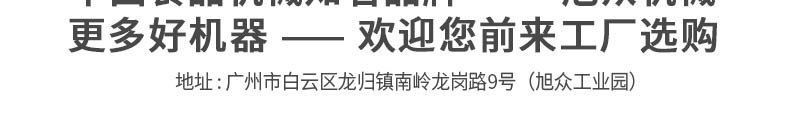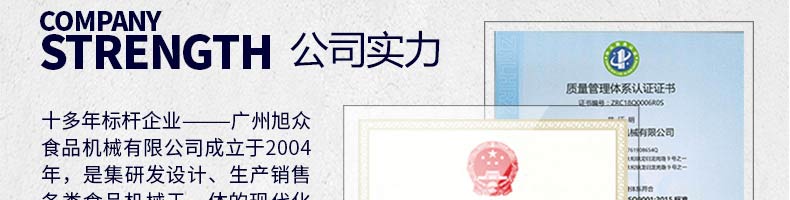 廣州旭眾食品機(jī)械有限公司是一家集科研開發(fā),生產(chǎn)設(shè)計(jì),營銷服務(wù)為一體的現(xiàn)代化生產(chǎn)企業(yè)?,F(xiàn)代化生產(chǎn)車間,精湛制造技術(shù),所產(chǎn)機(jī)械歷經(jīng)市場重重考驗(yàn),不斷贏得海內(nèi)外客戶的贊譽(yù)。