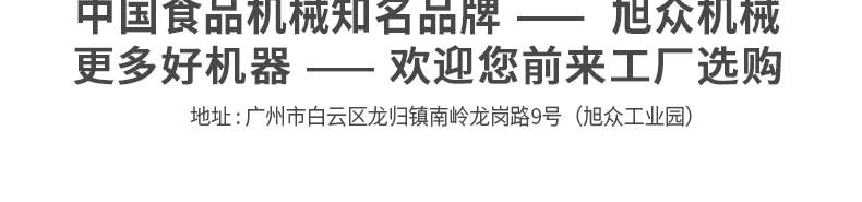 廣州旭眾食品機械有限公司是一家集科研開發(fā),生產(chǎn)設(shè)計,營銷服務(wù)為一體的現(xiàn)代化生產(chǎn)企業(yè)?,F(xiàn)代化生產(chǎn)車間,精湛制造技術(shù),所產(chǎn)機械歷經(jīng)市場重重考驗,不斷贏得海內(nèi)外客戶的贊譽。
